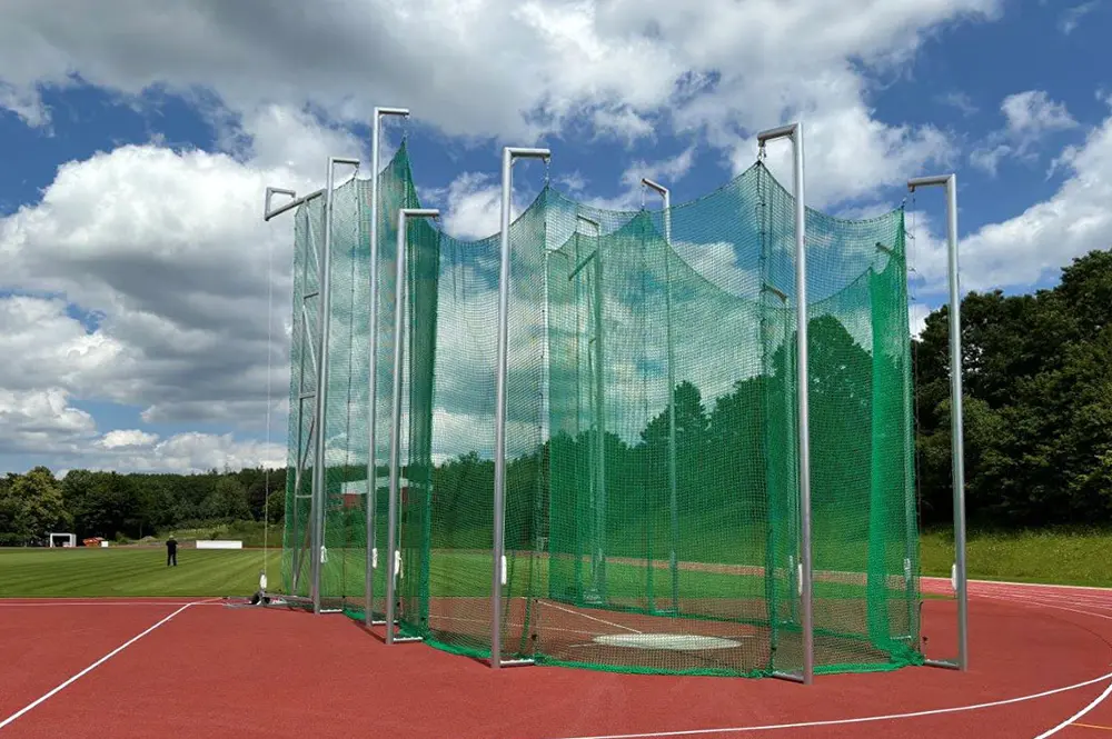 Bei bestem Wetter konnten wir in der letzten Woche unser neues kombiniertes Schutzgitter für Hammer- und Diskuswurf mit WA-Zertifikat installieren.